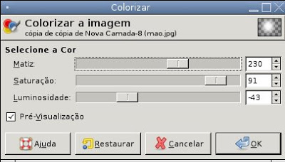 Como o chákra do Naruto tem a natureza “azulada” (céus se fosse rosa eu juro que não assistiria) vamos duplicar a camada (Hey, voce se lembrou de fazer uma camada só pra bolinha, né? ò_Óm) e colorizar praum azulzinho da gota