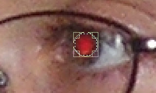Depois, com a ferramenta, selecione a parte vermelha do olho: