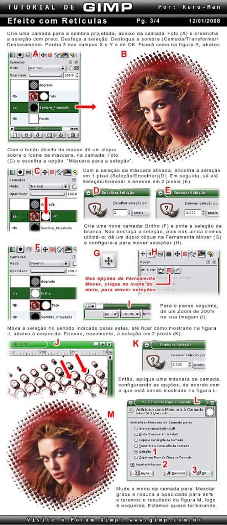 O efeito foi executado no Gimp versão 2.2.13, provavelmente os comandos