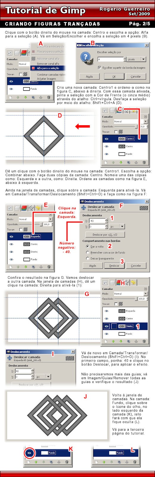 Figuras trançadas (ou entrelaçadas) eram bastante comuns na arte dos antigos povos do norte da Europa, como os celtas. Há vários tipos de figuras trançadas e este tutorial ensinará a criar um dos mais simples, esta ao lado:Aqui, outros exemplos (estes servem apenas para dar idéia do que pode ser feito usando as técnicas do tutorial, não estão incluídos nele):