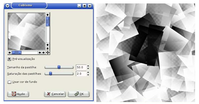 Combinei essa camada com a do fundo branco e apliquei o filtro Cubismo: