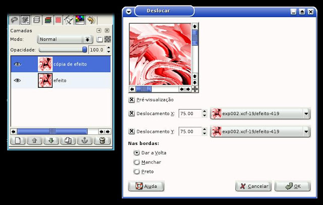 Se você gostou, tente esta outra experiência: duplique a camada e, na camada-cópia, aplique o filtro Mapear/Deslocar. você obterá algo semelhante ao resultado abaixo: