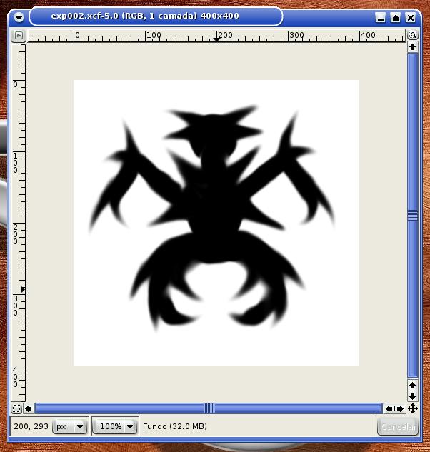 Abri um novo arquivo de 400×400 pixels, fundo branco. Em uma nova camada, criei um desenho qualquer e, em algumas partes dele, apliquei as Ferramentas Borrar e Convolver: