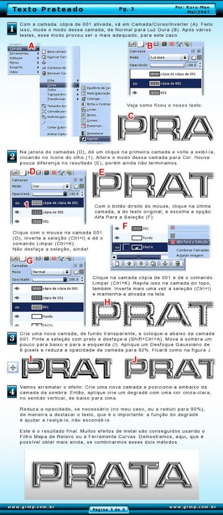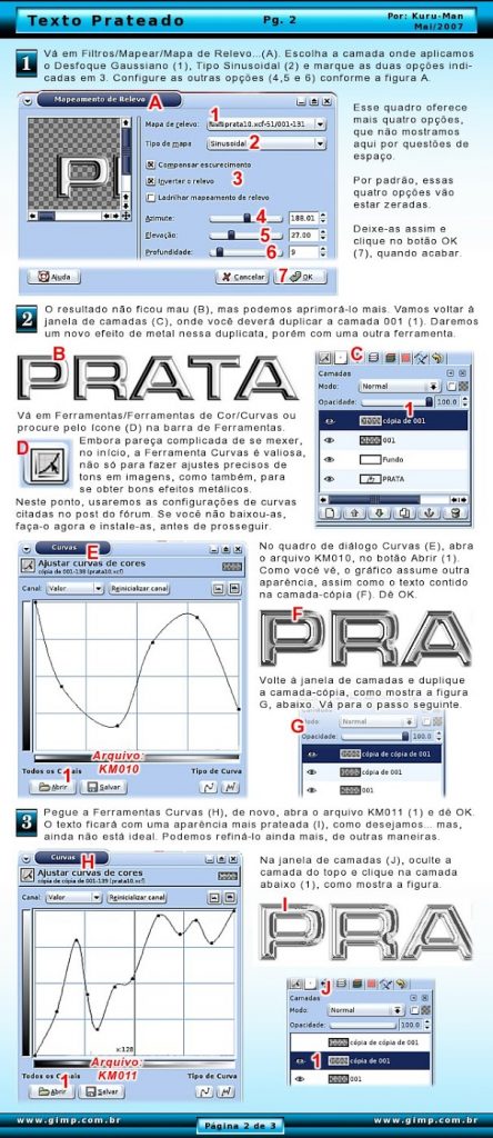 Para conseguir efeitos de metal, no Gimp, alguns usam o Filtro Mapa de Relevo; outros, a Ferramenta Curvas… porque não combinar esses dois métodos? É o que mostra este tutorial. Vejam o resultado ao lado: