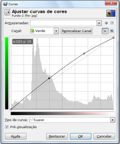 Depois mudei o canal para verde e deixei igual a figura abaixo
