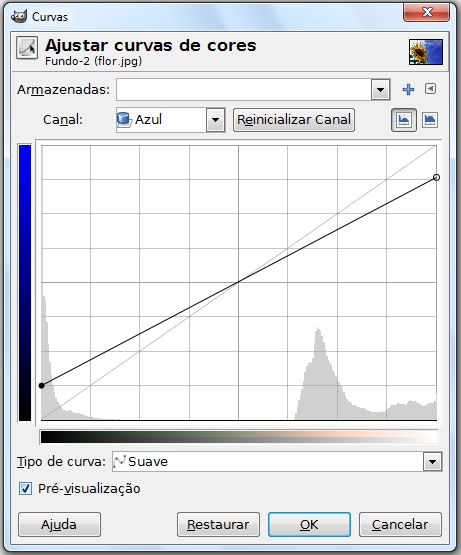Mude também para o canal azul e mexa na linha deixando-a igual na figura