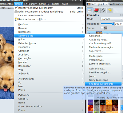 Requisito: Alem do GIMP, o plugin: Shadows and Highlights