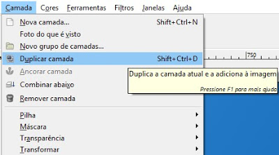 2 – Com a camada do balão selecionada, duplique-a acessando o menu > camada > duplicar camada